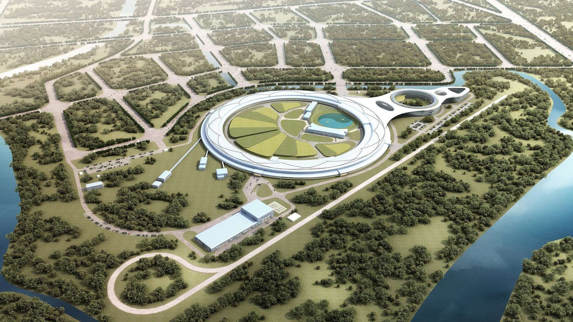 从怀柔科学城高空俯瞰,一座形状很像手持放大镜的建筑格外显眼,它就是国家重大科技基础设施高能同步辐射光源(HEPS)。